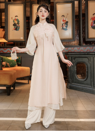 Cuối cùng, bạn có thể phối áo dài với quần ống rộng, chất liệu mềm hoặc quần màu sáng để tạo độ hài hòa. Nếu là áo dài cách tân, có thể kết hợp thêm thắt lưng nhỏ hoặc áo khoác lửng để tăng điểm nhấn và giúp tổng thể trang phục trở nên hiện đại nhưng vẫn giữ được nét truyền thống dịu dàng..